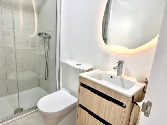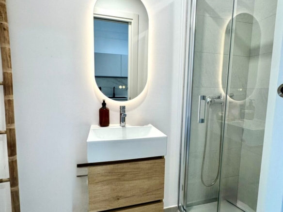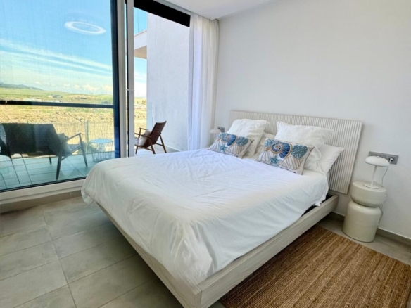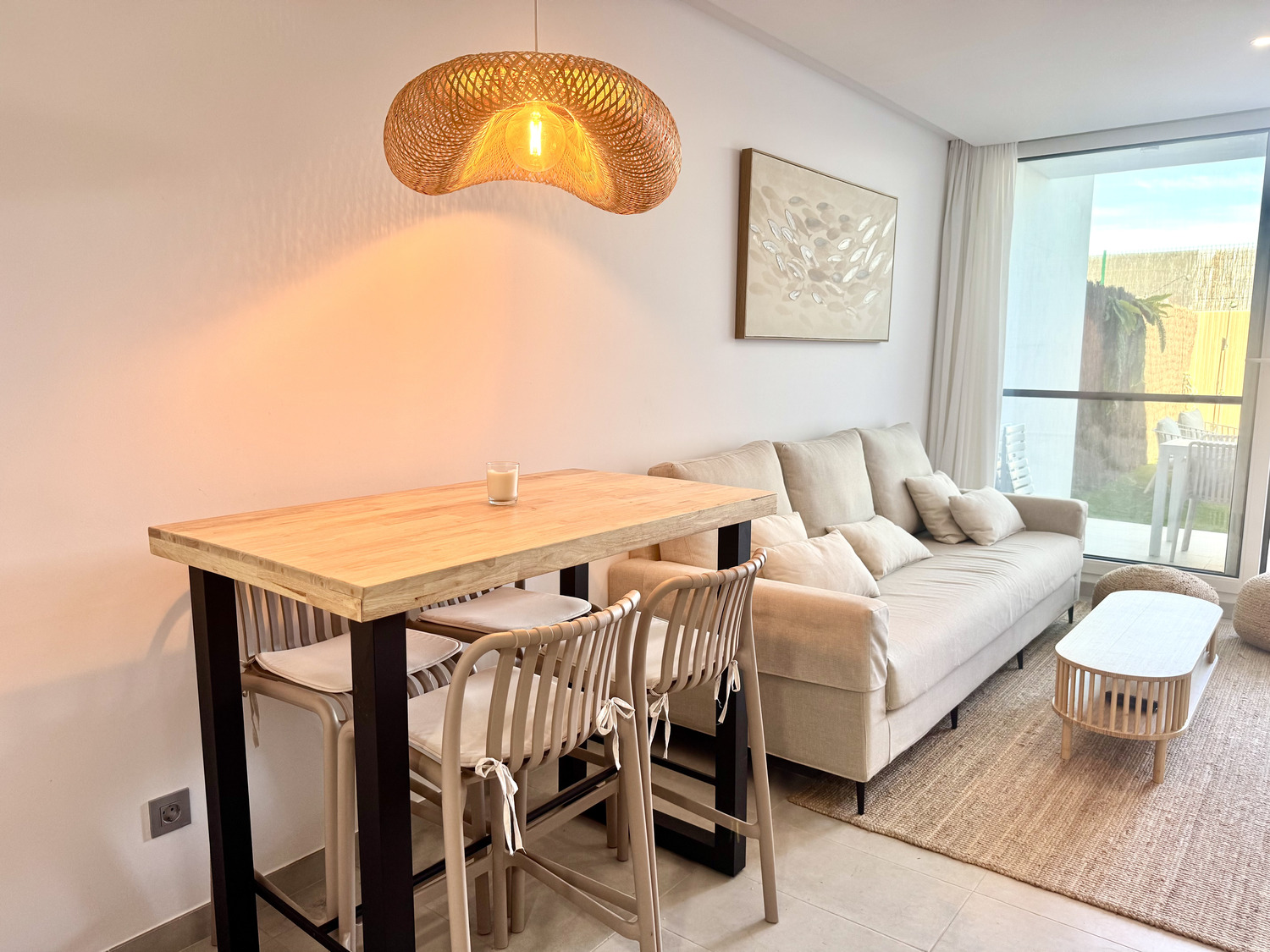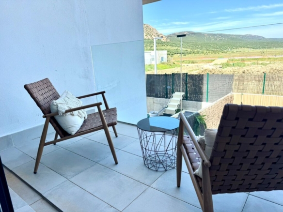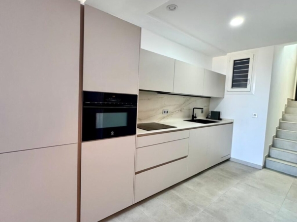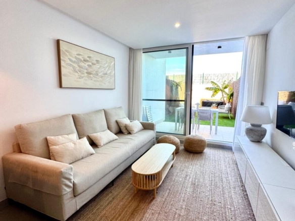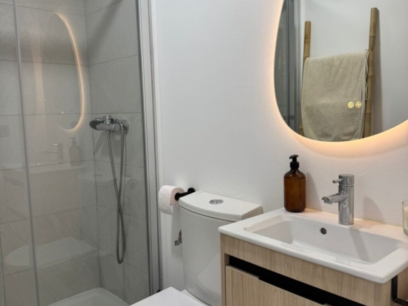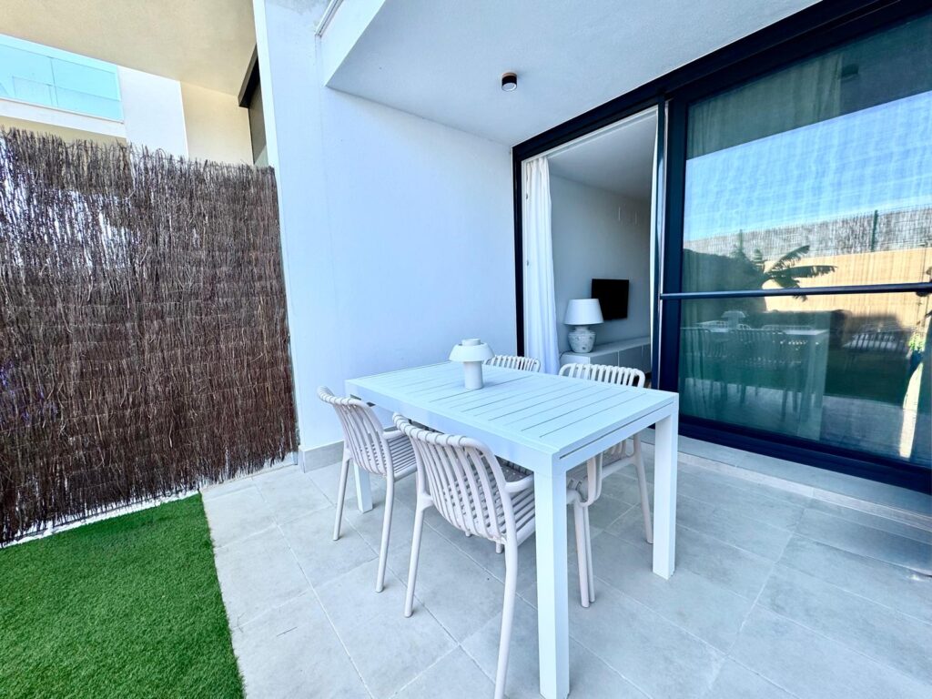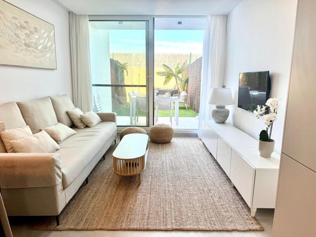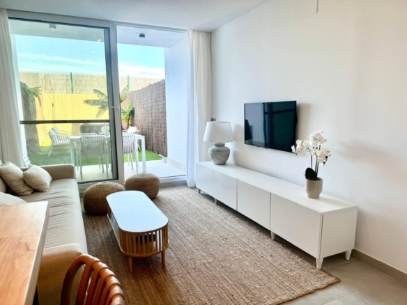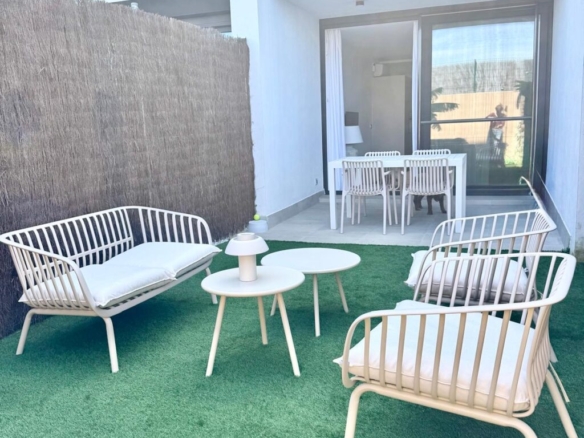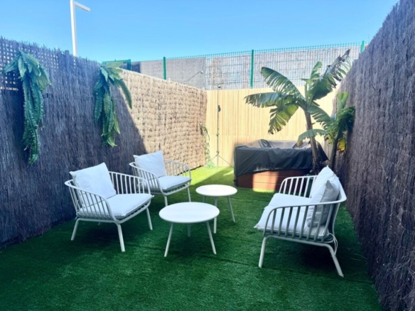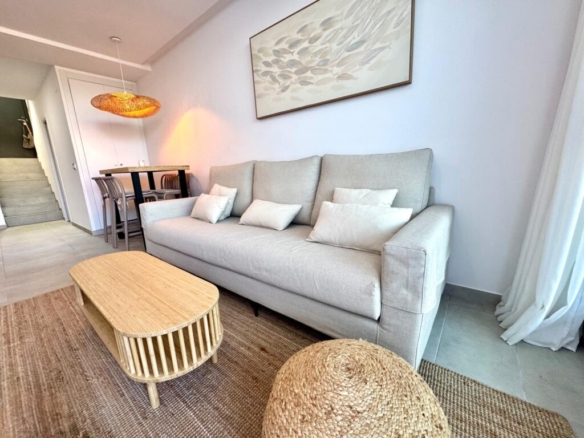 Distribuida en dos plantas, en la planta baja cuenta con un luminoso salón-comedor con cocina integrada totalmente equipada, un baño completo con ducha y acceso directo a un agradable porche con jardín privado. Esta zona exterior dispone además de ducha exterior y jacuzzi, creando un espacio perfecto para relajarse y disfrutar en familia.