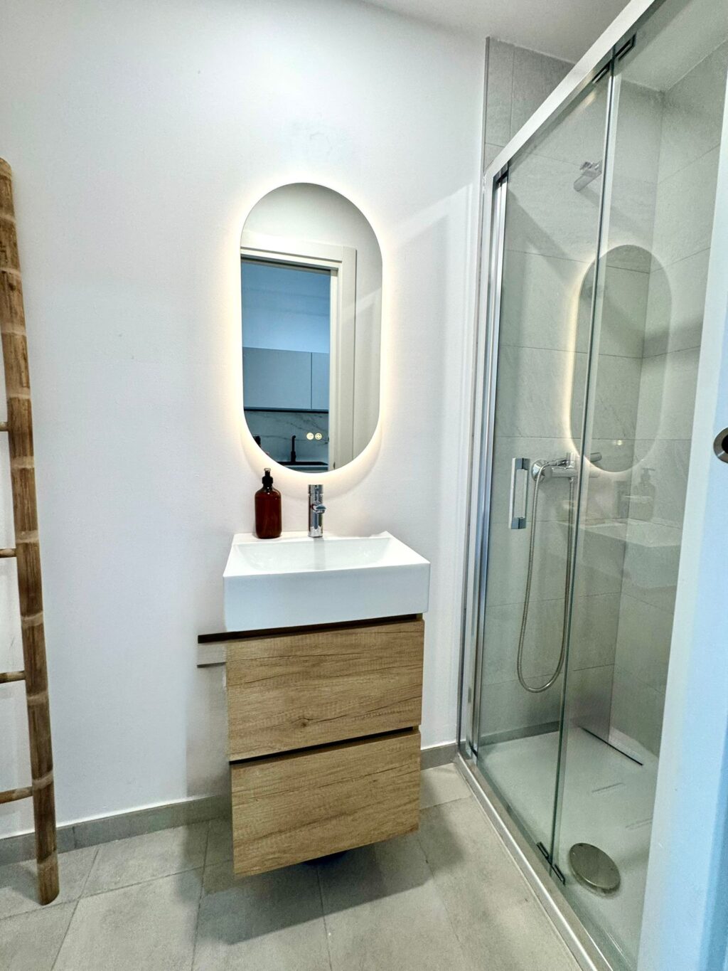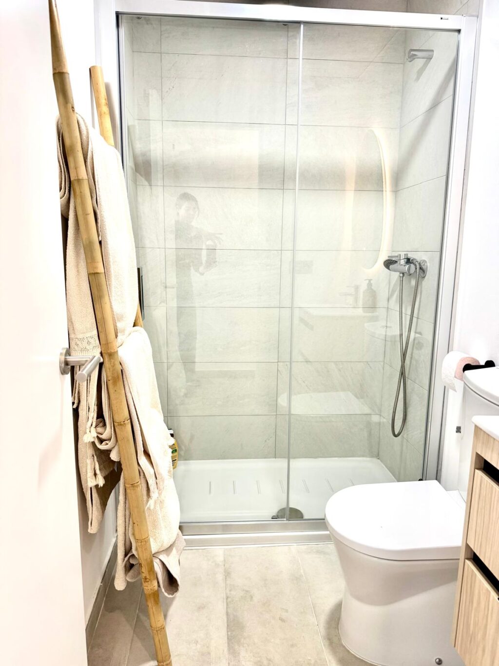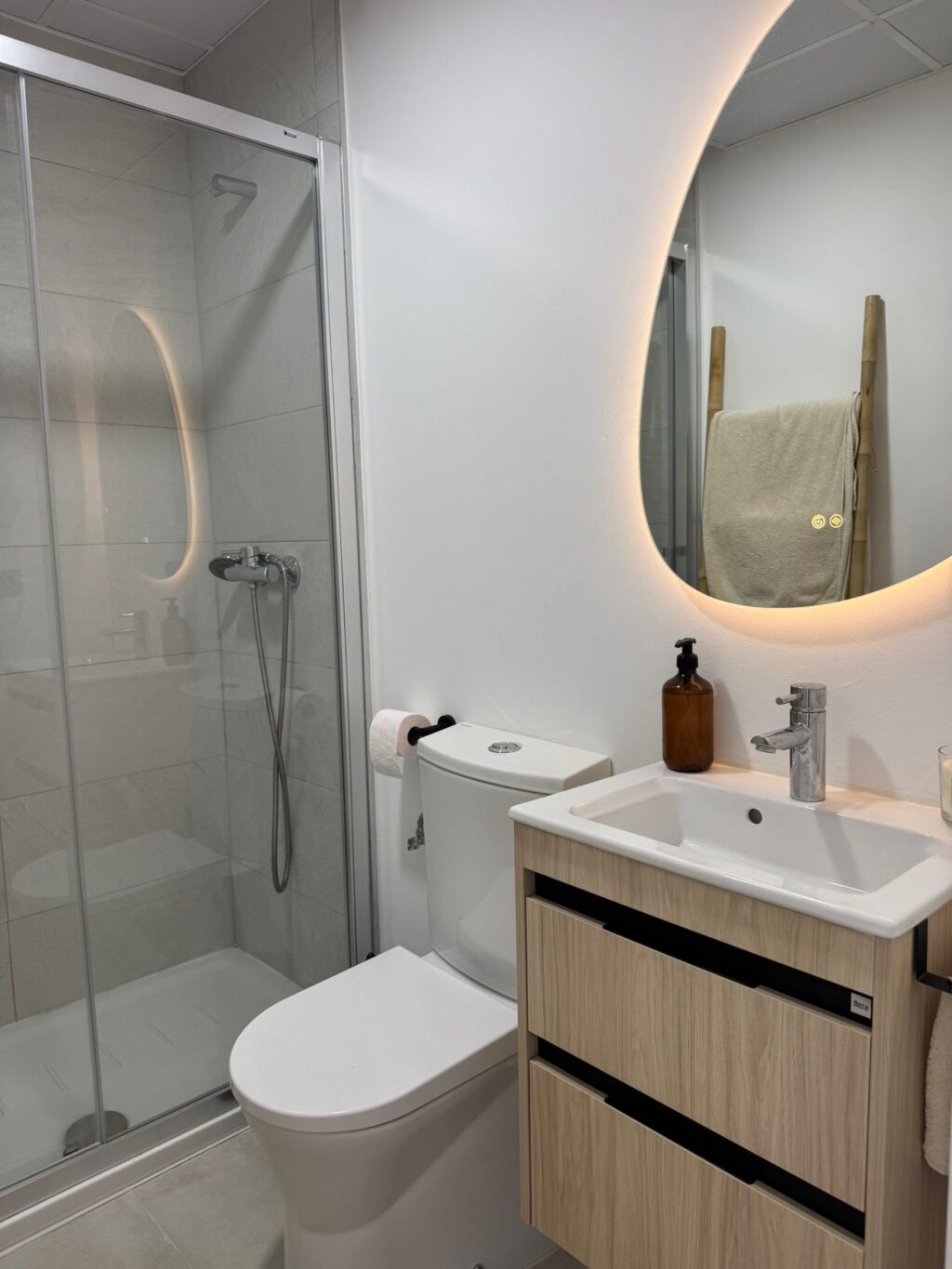 En la planta superior se encuentran dos dormitorios, uno principal con cama de matrimonio y otro con dos camas individuales de 90 cm, además de una terraza y un segundo baño completo.